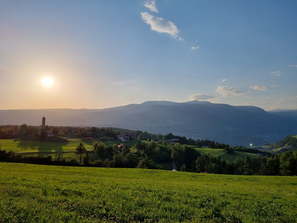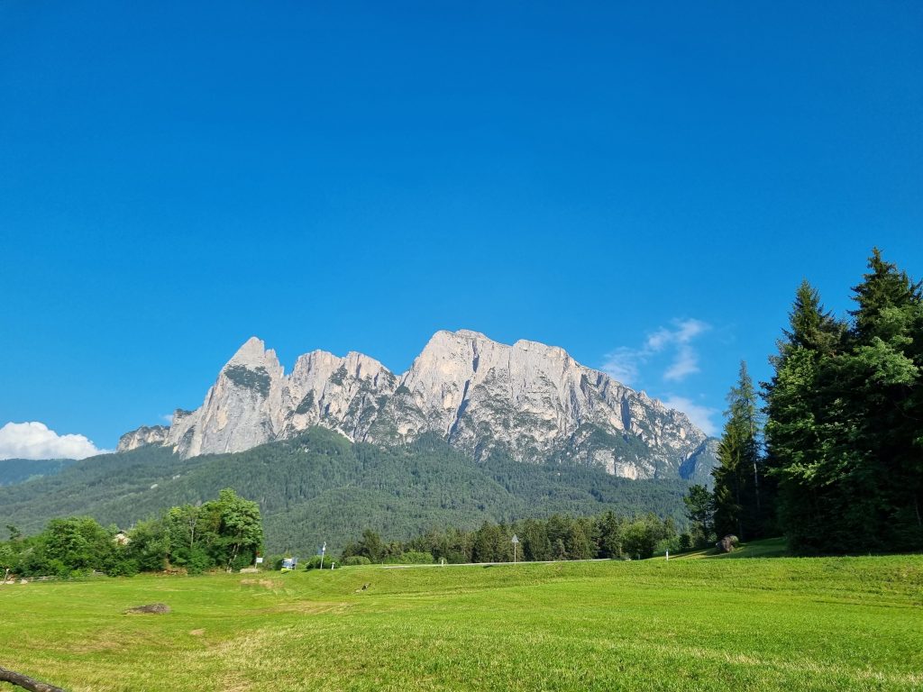 Am Abend vor dem Start können wir einen kleinen Spaziergang empfehlen. Du hast schöne Ausblicke auf die umliegenden saftig grünen Wiesen und kannst einen ersten Blick auf die über 2.000 Meter hohen steilen Felswände des Schlern werfen. Du bekommt bereits ein Gefühl für das, was dich die nächsten Tage auf deiner Hüttenwanderung erwartet.